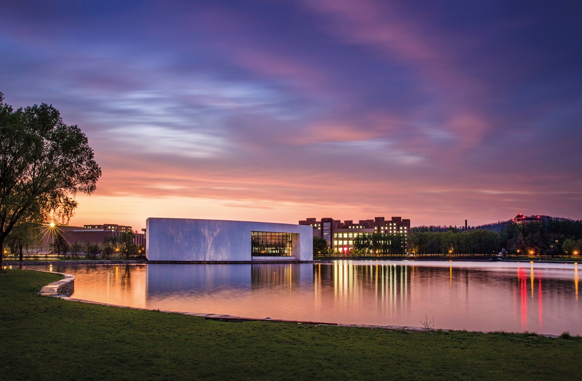 水晶宫图书馆建立于2016年,坐落在美丽的绿岛湖畔,建筑面积为5820平方米,整体洁白高雅,简约现代,采用三角形钢架结构设计,两侧为玻璃幕墙,可将湖面风光尽收眼底,顶部为全透明玻璃天窗,在阳光的照射下如水晶般闪耀,水晶宫因其独特的造型设计,成为沈阳城市学院地标性建筑之一。